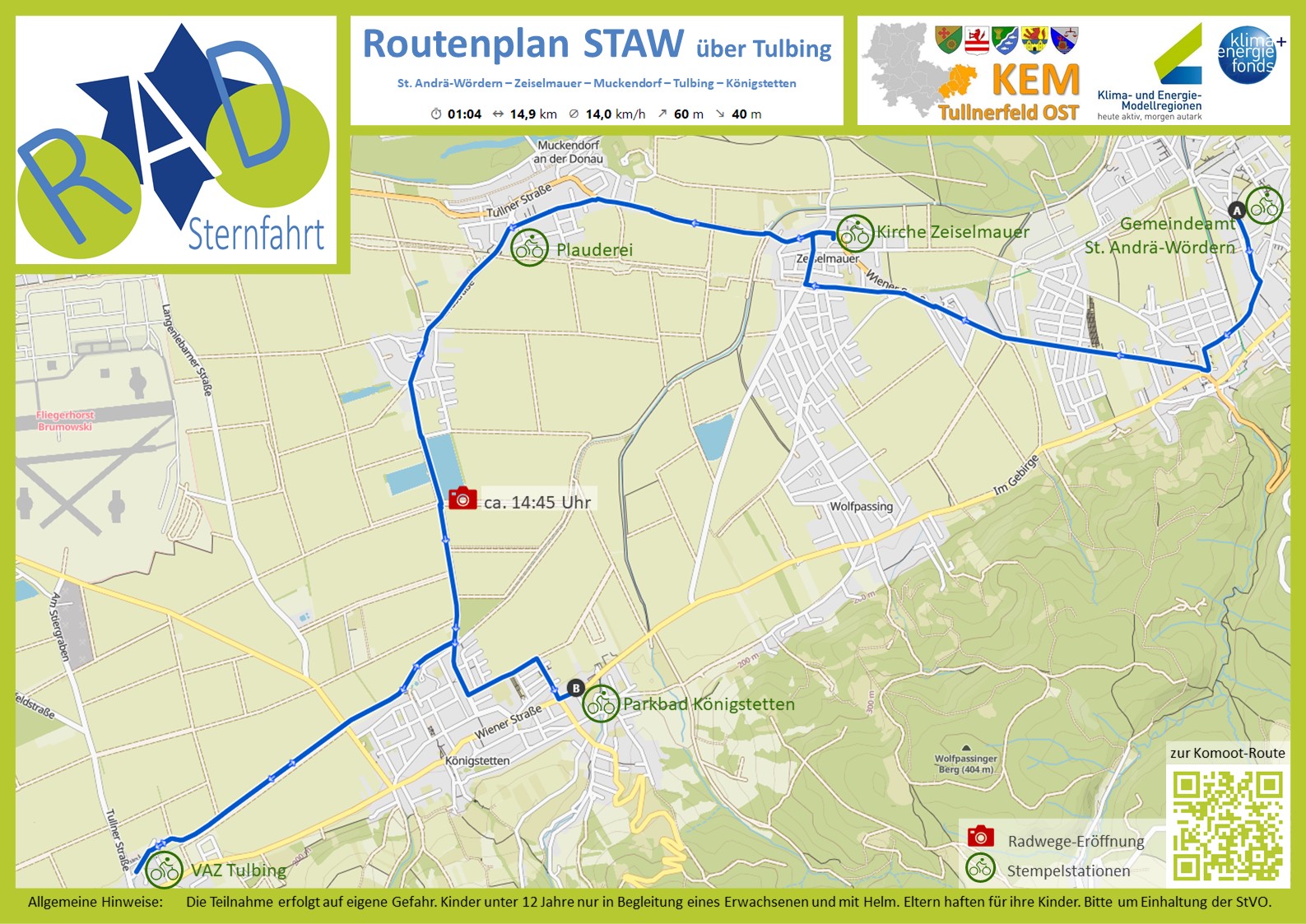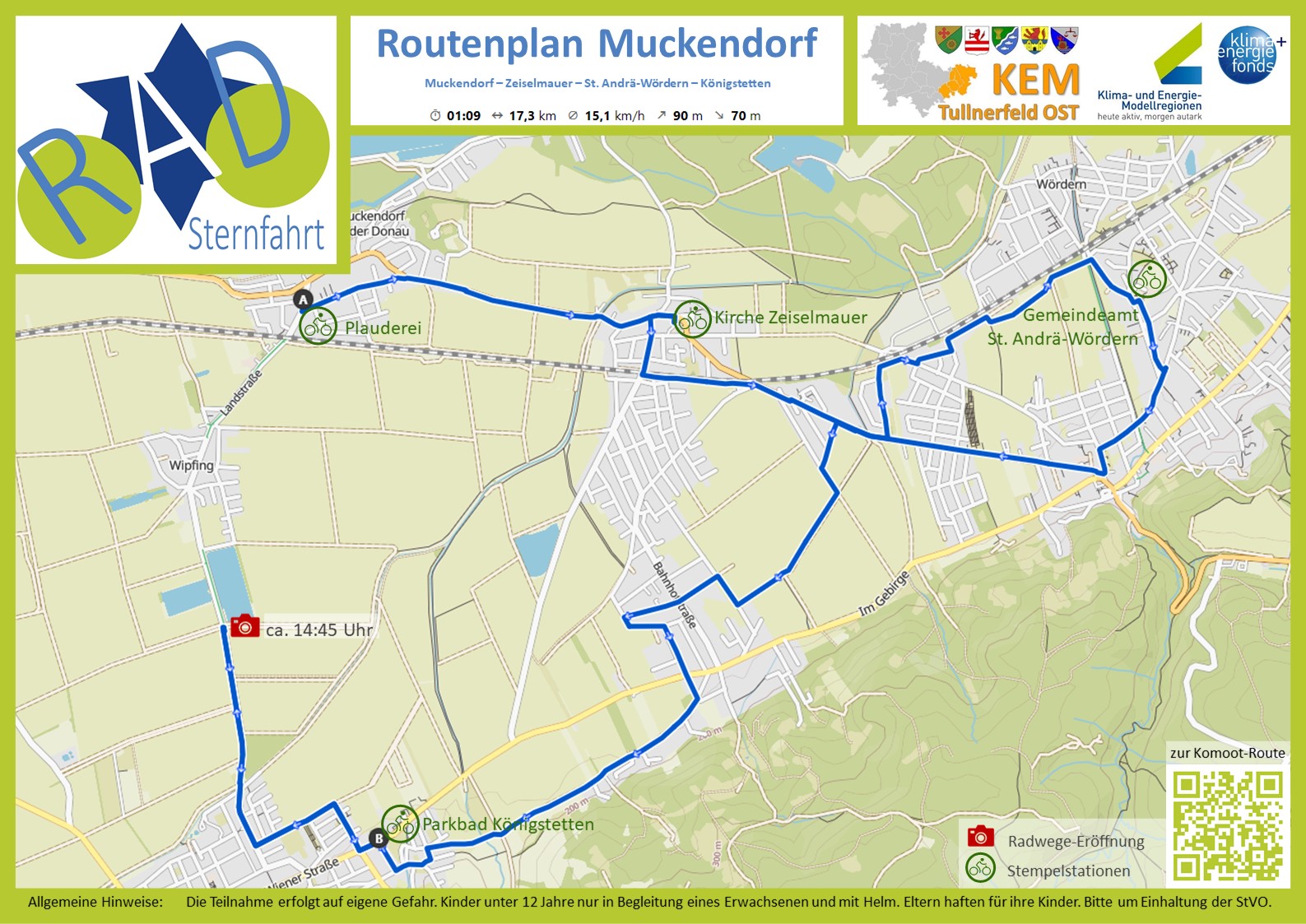 Das Motto: Radeln Sie mit und lernen Sie dabei einige der geplanten, bzw. bereits realisierten Radrouten in der Region Tullnerfeld OST kennen! Diesem Aufruf folgten 70 Radfahrer*innen und erkundeten die alten und neuen Radwege der Region.