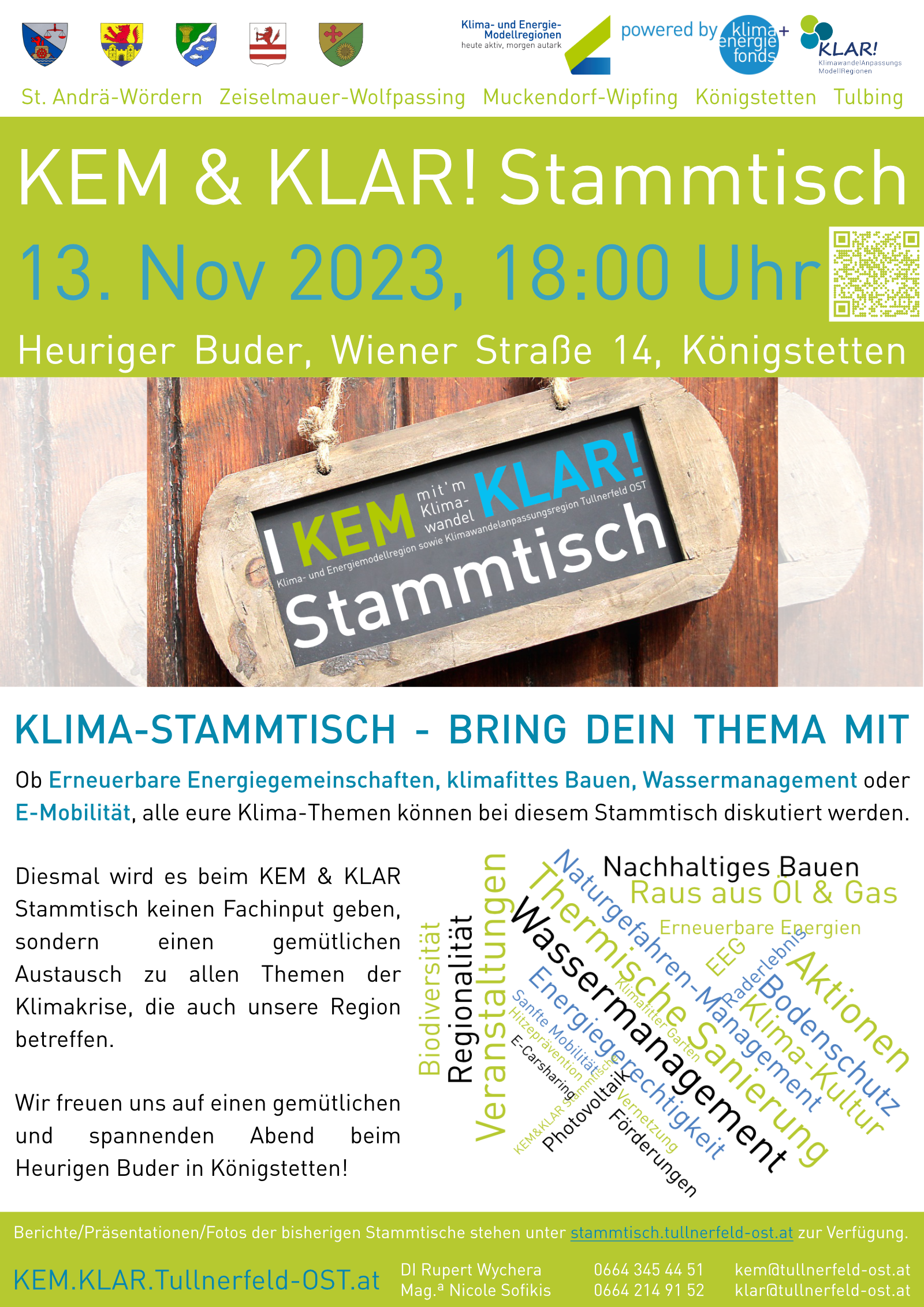 KEM & KLAR Stammtisch am kommenden Montag in Königstetten