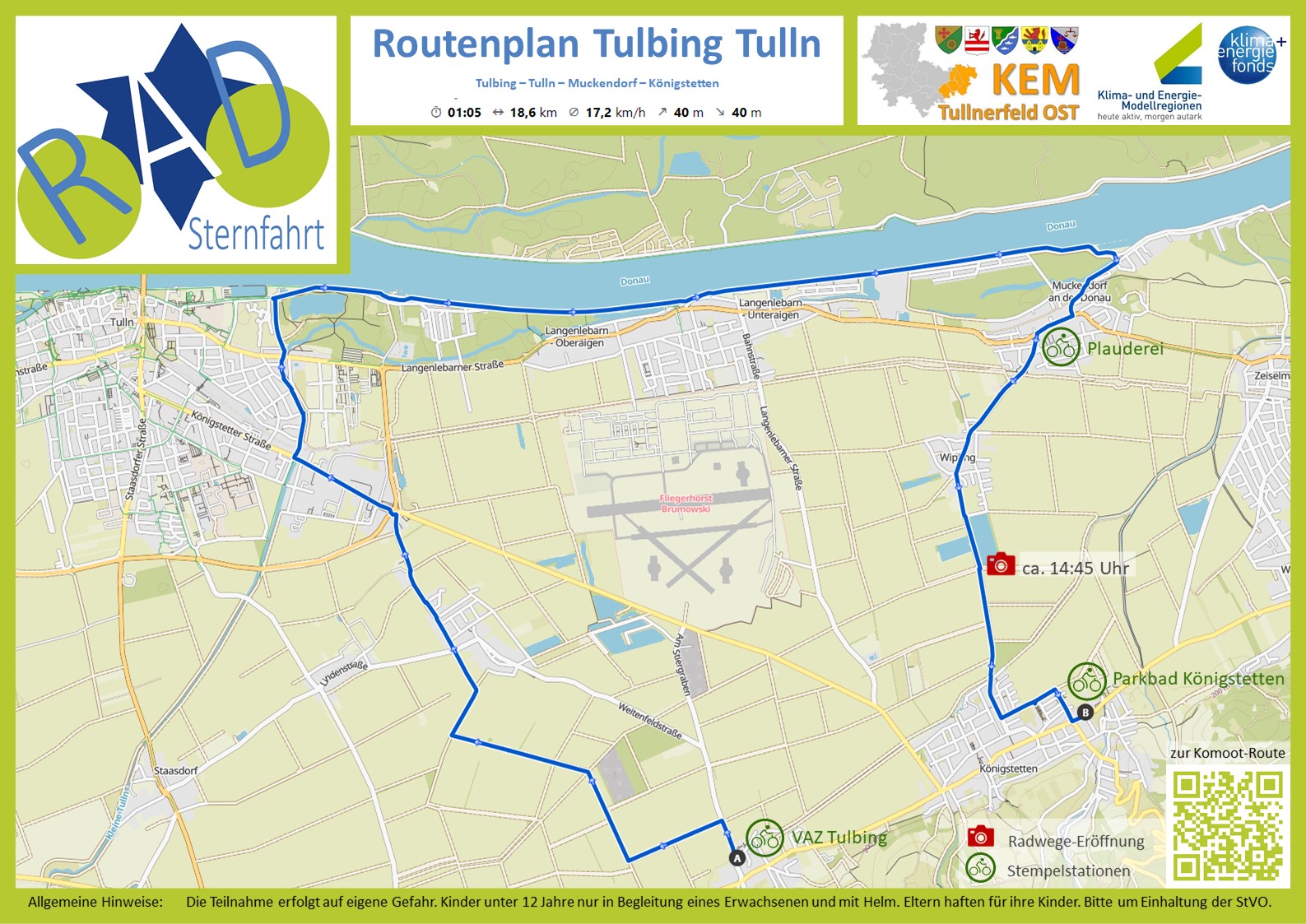 Das Motto: Radeln Sie mit und lernen Sie dabei einige der geplanten, bzw. bereits realisierten Radrouten in der Region Tullnerfeld OST kennen! Diesem Aufruf folgten 70 Radfahrer*innen und erkundeten die alten und neuen Radwege der Region.