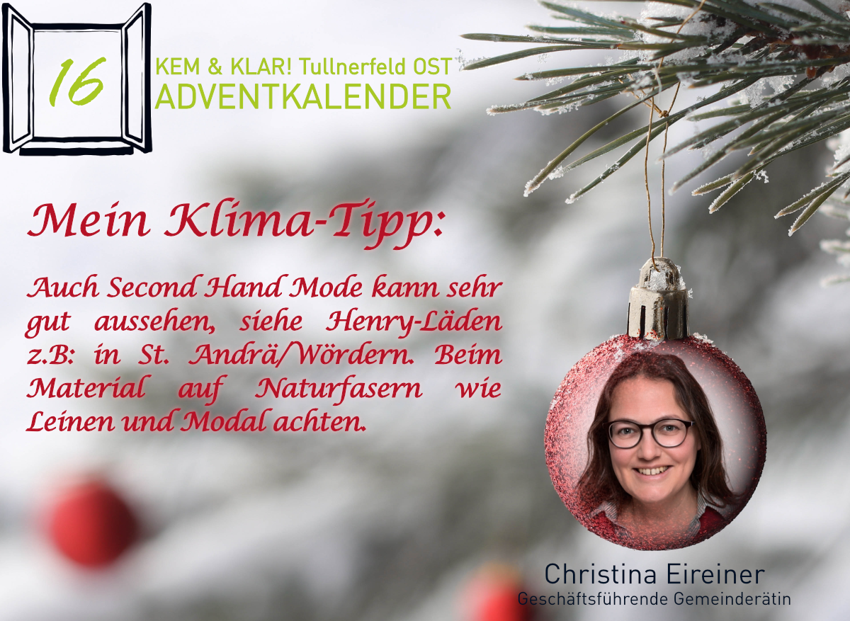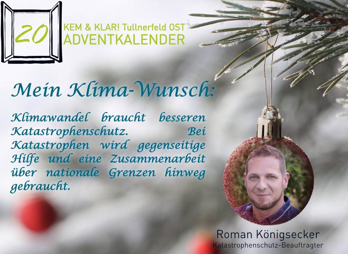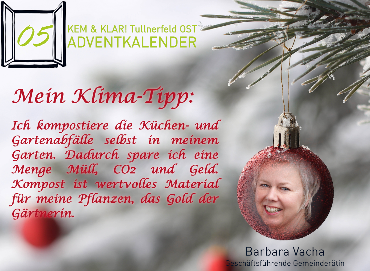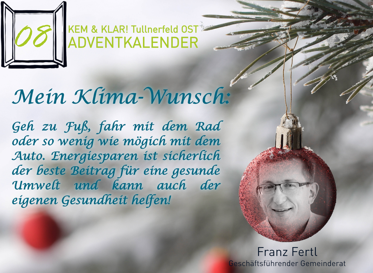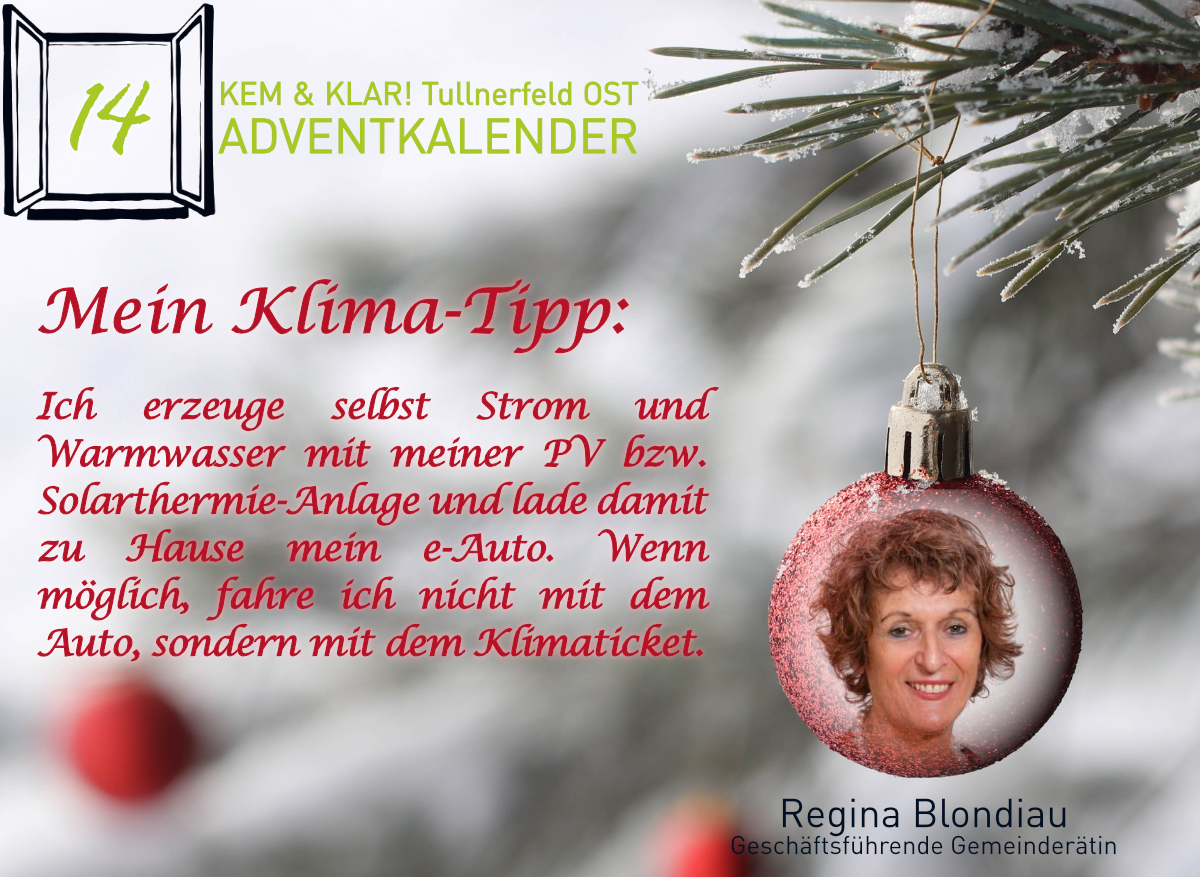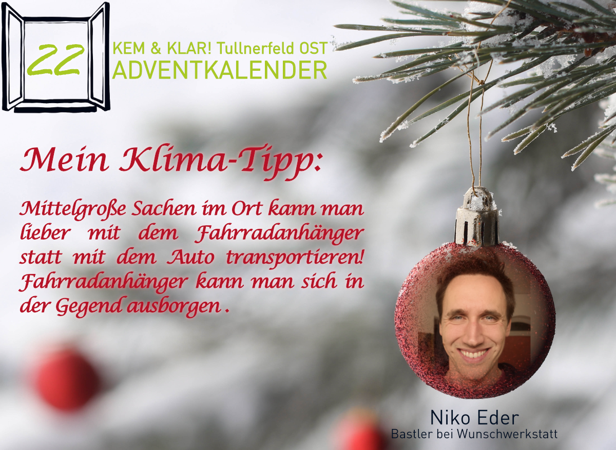 Heuer gibt es erstmals einen KEM & KLAR! Adventkalender, Personen aus der Region teilen ihren persönlichen Klima-Tipp oder ihren Klima-Wunsch.