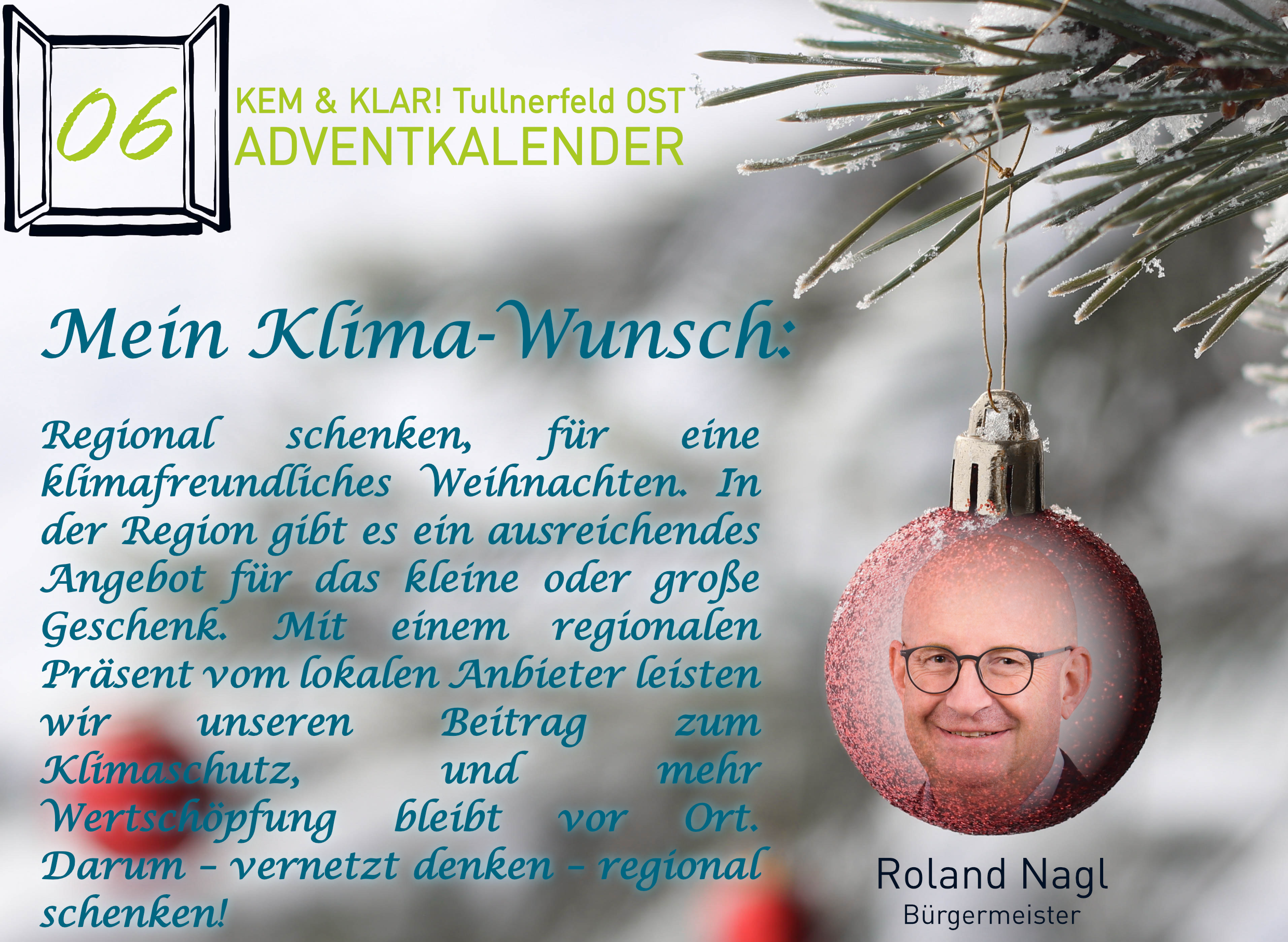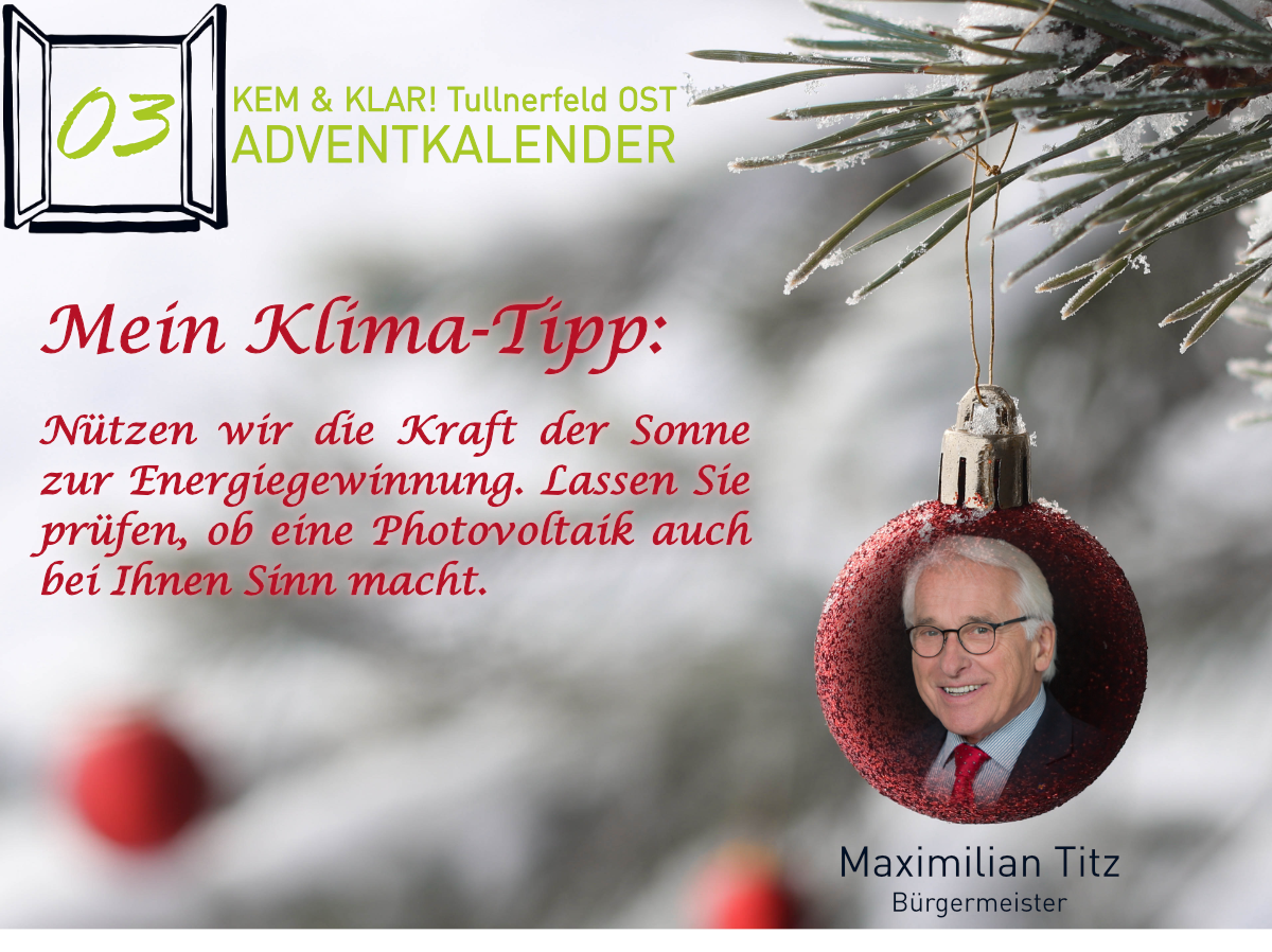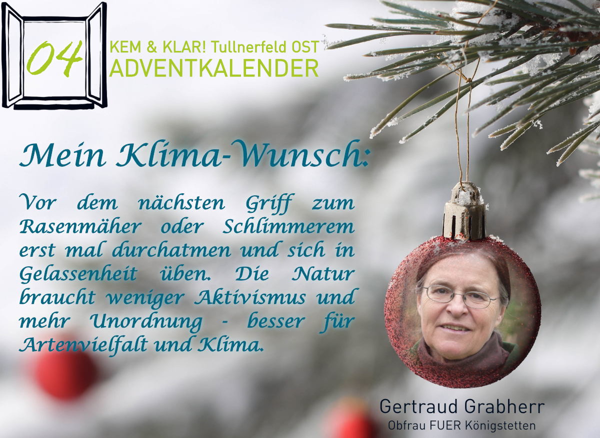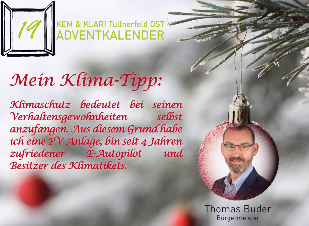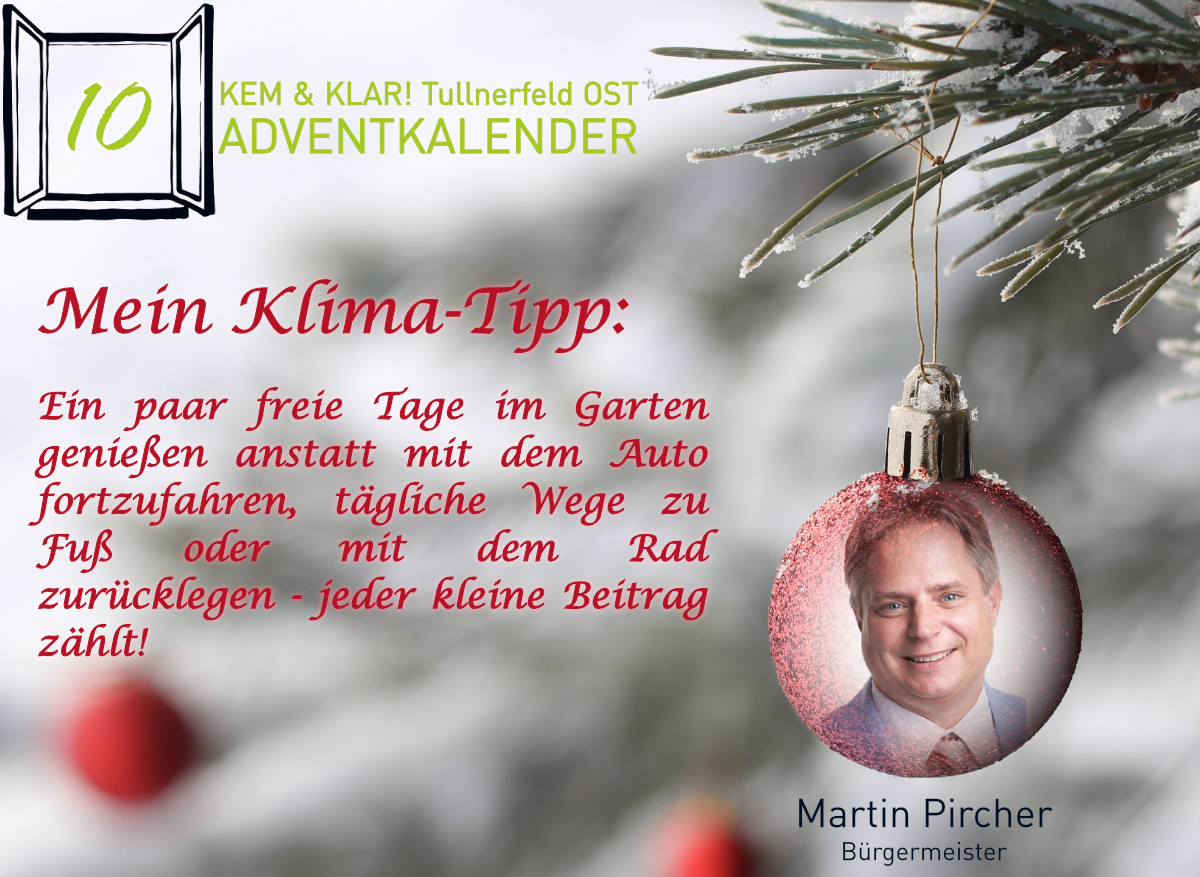 Heuer gibt es erstmals einen KEM & KLAR! Adventkalender, Personen aus der Region teilen ihren persönlichen Klima-Tipp oder ihren Klima-Wunsch.